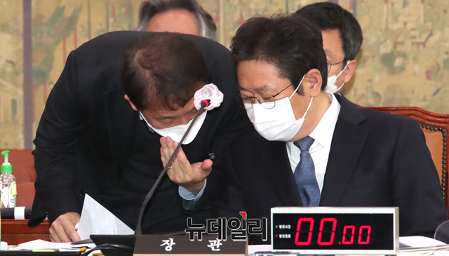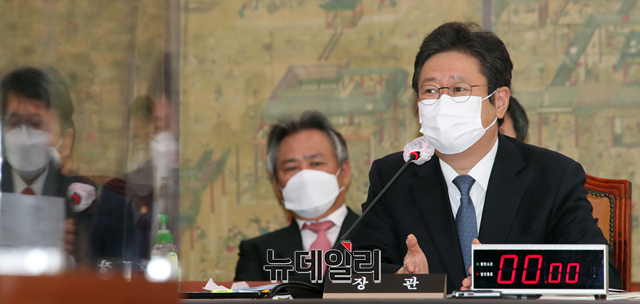 황희 문화체육관광부 장관이 26일 오전 국회에서 열린 문화체육관광위원회 전체회의에서 의원질문에 답하고 있다. (사진=공동취재단)