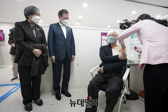 [포토] 코로나19 백신접종 시작, 접종현장 방문한 문재인 대통령