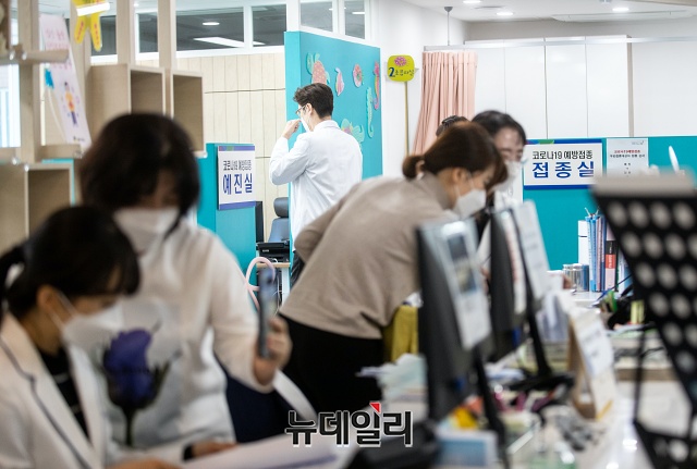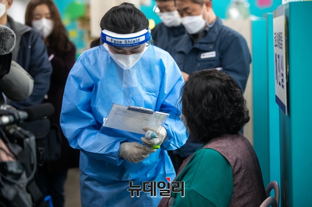 코로나19 백신 접종이 시작된 26일 오전 서울 성동구 보건소에서 코로나19 아스트라제네카(AZ) 백신 접종을 마친 요양병원 종사자들이 접종 후 이상반응 관찰실에서 대기하고 있다.코로나19 백신 접종은 26일 오전 9시부터 전국에서 동시에 시작된다. 26일은 요양병원·요양시설 등의 만 65세 미만 입소자·종사자를 대상으로, 27일은 코로나19 환자를 직접 치료하는 병원의 종사자를 대상으로 접종이 시행된다.한국은 전세계 102번째 백신 접종국이 됐다. (사진=공동취재단)