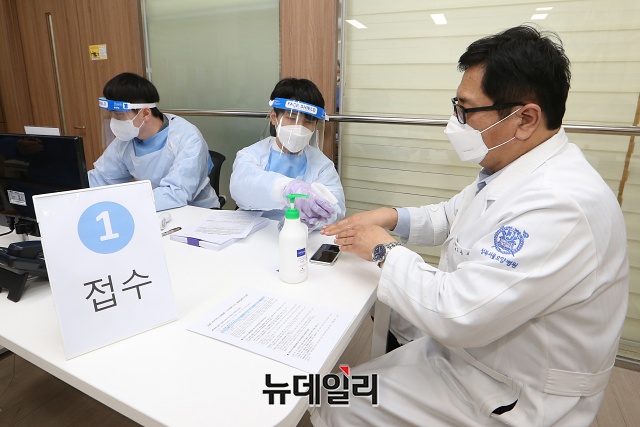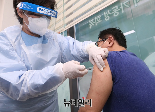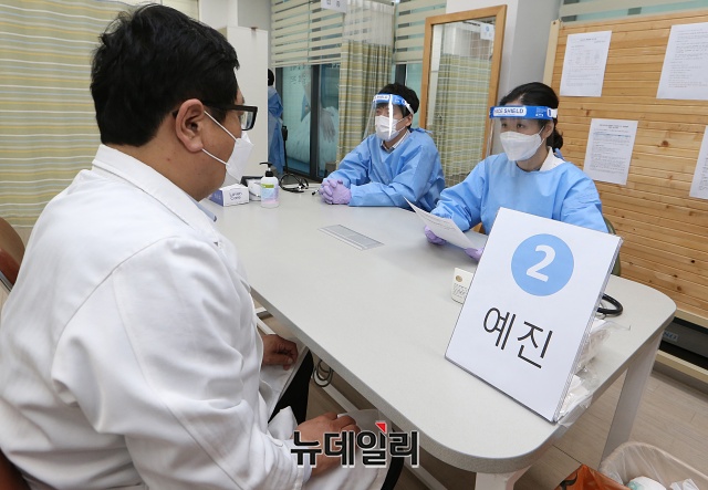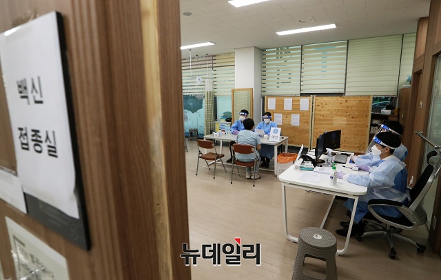 코로나19 백신 접종이 시작된 26일 오후 서울 성북구 성북서울요양병원에서 의료진들이 코로나19 아스트라제네카(AZ) 백신 자체접종을 마치고 관찰 대기하고 있다.백신 접종은 26일 오전 9시부터 전국에서 동시에 시작된다. 26일은 요양병원·요양시설 등의 만 65세 미만 입소자·종사자를 대상으로, 27일은 코로나19 환자를 직접 치료하는 병원의 종사자를 대상으로 접종이 시행된다.이로써 한국은 전세계 102번째 백신 접종국이 됐다. (사진=공동취재단)