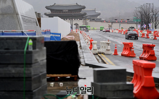 이날 광화문 광장에는 광장 조성사업으로 인한 공사와 경찰이 곳곳에 설치해 둔 펜스로 이동하는 시민들이 불편을 호소하기도 했다.