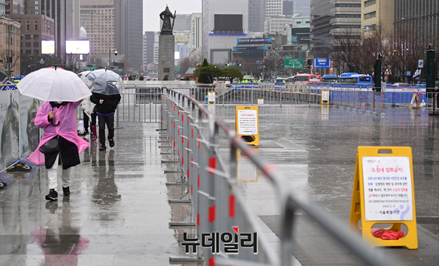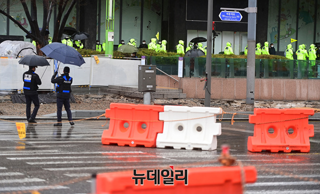 경찰은 광화문 광장을 중심으로 펜스를 설치해 이동동선을 차단했다. 광화문 광장은 조성사업으로 대규모 공사가 진행되고 있어 시민들은 이동에 불편을 겪었다.