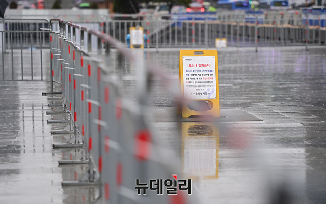 경찰은 광화문 광장을 중심으로 펜스를 설치해 이동동선을 차단했다. 광화문 광장은 조성사업으로 대규모 공사가 진행되고 있어 시민들은 이동에 불편을 겪었다.