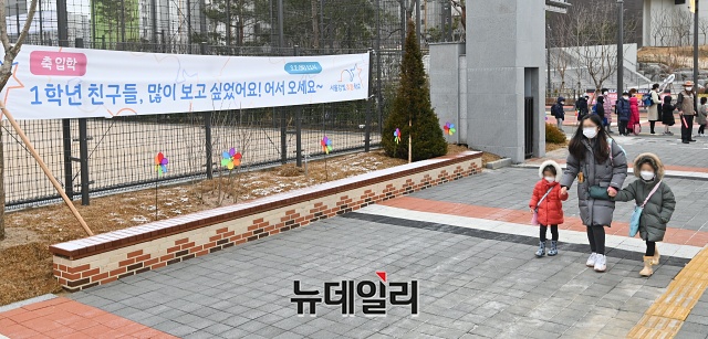 전국적으로 개학이 시작된 2일 오전 서울 강동구 강빛초중이음학교에서 초등학생들이 등교하고 있다.