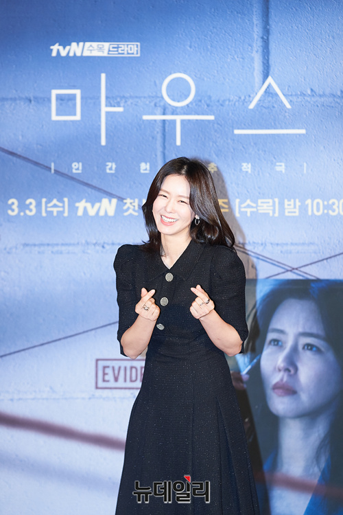 배우 경수진이 3일 오전 온라인으로 열린 tvN 새 수목드라마 '마우스(연출 최준배, 극본 최란)' 제작보고회에서 포토타임을 갖고 있다.'마우스'는 바른 청년이자 동네 순경인 정바름(이승기 분)과 어린 시절 살인마에게 부모를 잃고 복수를 생각하는 무법 형사 고무치(이희준 분)가 사이코패스 중 상위 1퍼센트로 불리는 가장 악랄한 프레데터와 대치하며 운명이 송두리째 뒤바뀌는 모습을 담았다.배우 이승기, 이희준, 박주현, 경수진, 안재욱 등이 출연한다. 3일 밤 10시 30분 첫 방송. (사진=tvN)