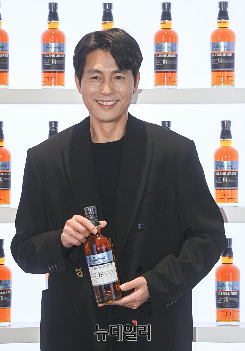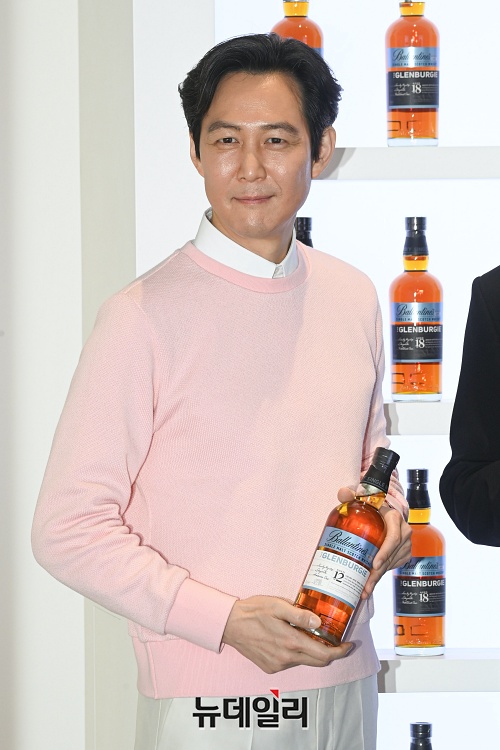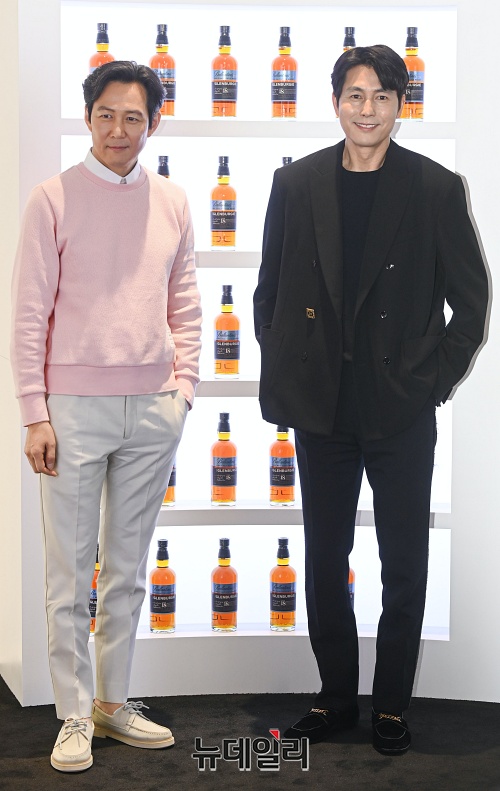배우 정우성, 이정재가 5일 오전 서울 여의도 더현대 서울에서 열린 '발렌타인 싱글 몰트 팝업 스페이스' 오픈 행사에서 포토타임을 갖고 있다.