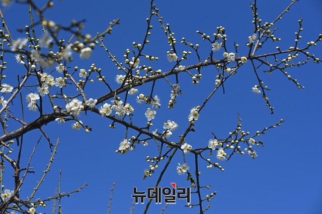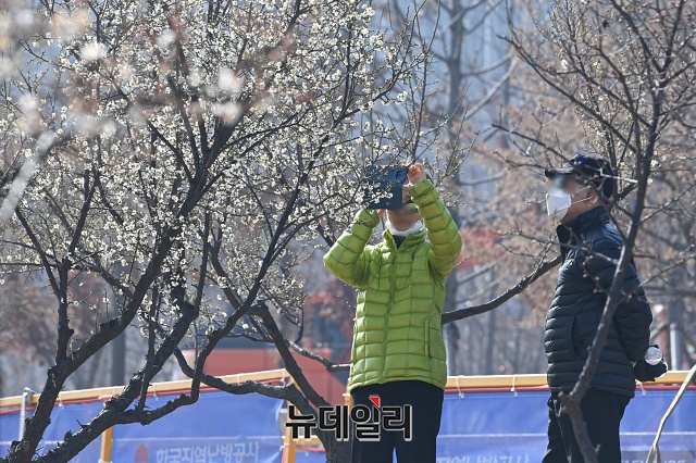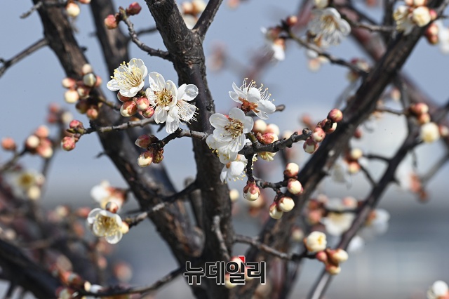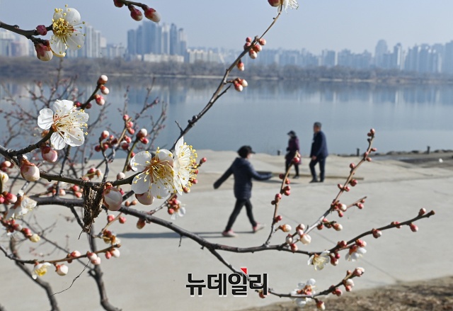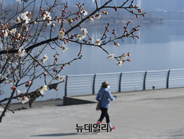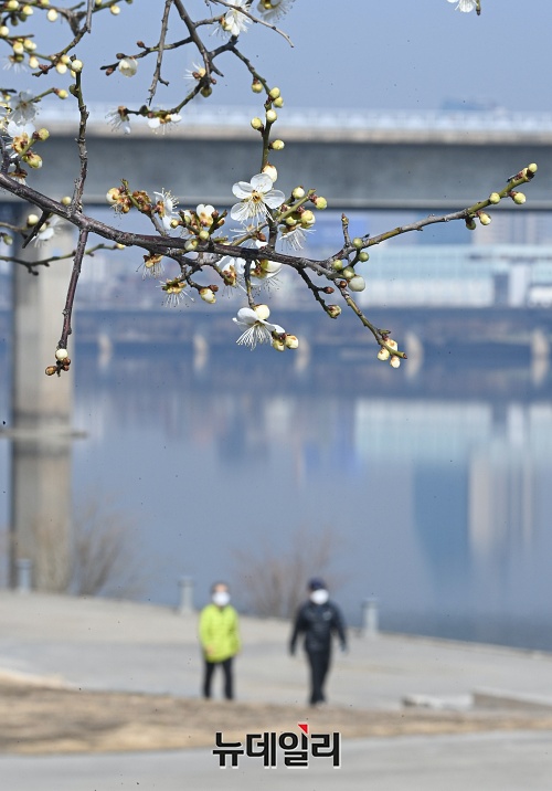 개구리가 겨울잠에서 깨어난다는 '경칩(驚蟄)'인 5일 오전 서울 여의도 한강공원에 매화가 피어있다. 기상청은 전국 대부분 지역에 낮 기온 15도 이상으로 올라 포근할 것으로 예보했다.