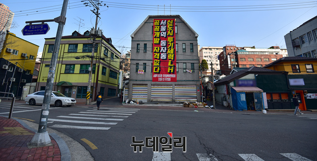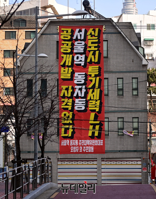 [포토] 'LH 규탄' 현수막 내걸린 동자동쪽방촌