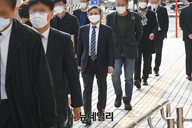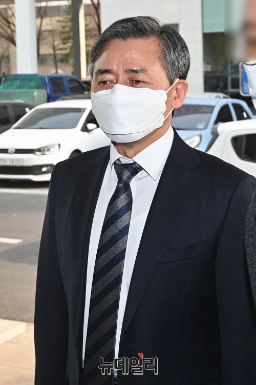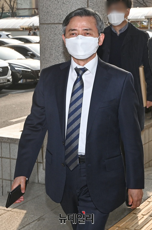 양승동 KBS 사장이 9일 오후 서울 영등포구 남부지법에서 열린 공판에 출석하고 있다.
