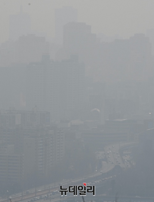 [포토] 미세먼지로 뒤덮인 서울 도심, 14일까지 '나쁨' 단계