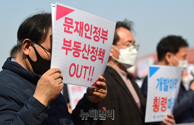협의회는 기자회견에서 공공주택특별법을 폐지를 요구하며 주민과 토지주들의 의견을 담은 성명문을 발표했다. (경기 시흥=정상윤 기자)