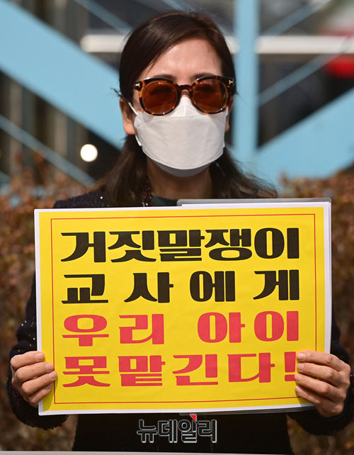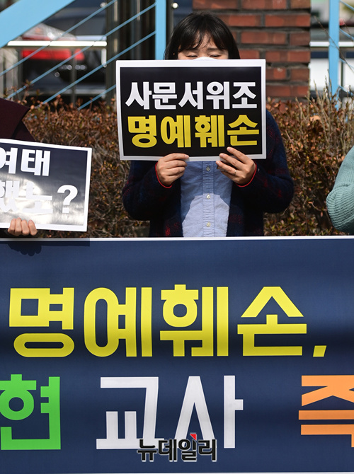 앞서 이들은 8일 서울교육청 앞에서 교사이자 전교조 부대변인 K씨의 파면을 요구했다. 또 조희연 교육감이 부당한 압력으로 K씨를 복직 시켰다고 주장하며 조 교육감의 사퇴를 촉구하기도 했다.