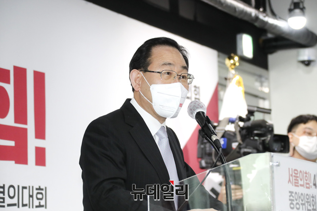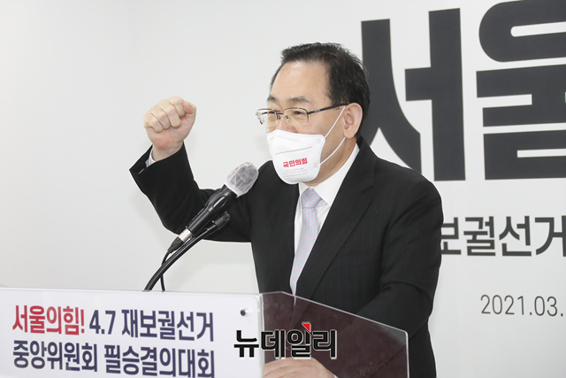 주호영 국민의힘 원내대표가 11일 오후 서울 여의도 국민의힘 중앙당사에서 열린 '국민의힘 4.7 보궐선거 중앙위원회 필승결의대회'에서 발언을 하고 있다. (사진=국민의힘)