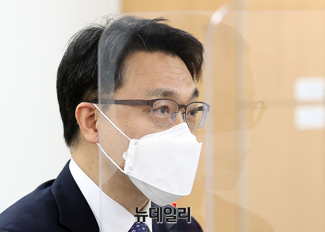 김진욱 고위공직자범죄수사처(공수처) 처장이 12일 오후 경기 과천시 정부과천청사 공수처에서 열린 인사위원회에서 인사위원들과 기념촬영을 하고 있다. (사진은 왼쪽부터 오영중 변호사, 김영종 변호사 ,이영주 서울대 교수, 김진욱 공수처장, 여운국 공수처 차장, 유일준 변호사, 나기주 변호사.)