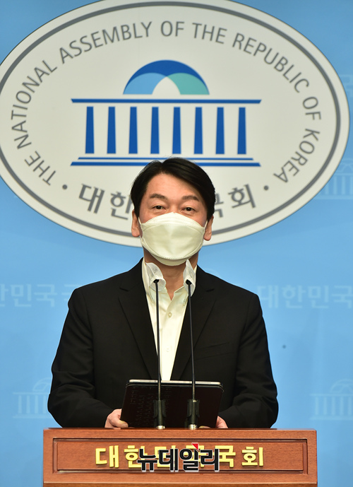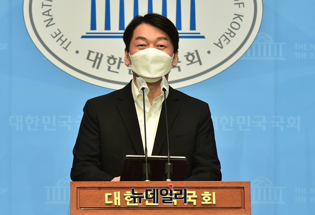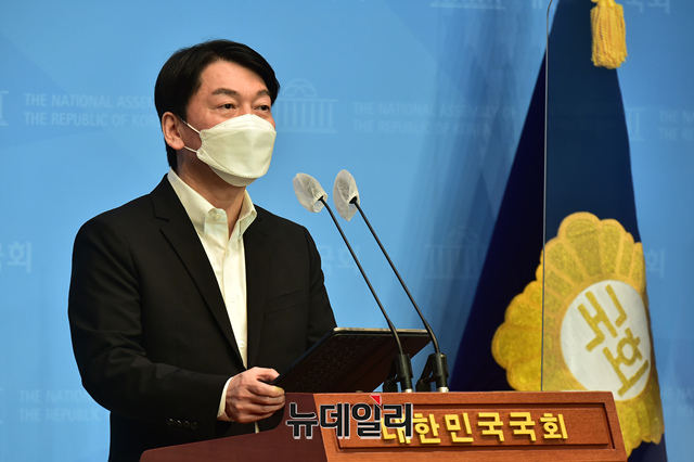 서울시장 보궐선거에 출마한 안철수 국민의당 후보가 14일 오후 국회 소통관에서 기자회견을 하고 있다. 이날 안 대표는 단일 후보가 돼 서울시장에 당선되면 연립 시정과 야권 전체의 통합을 추진하겠다고 밝혔다.