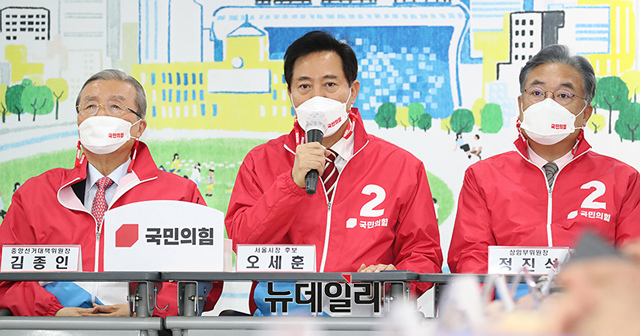 오세훈 국민의힘 서울시장 후보가 15일 오전 서울 여의도 국민의힘 중앙당사에서 열린 4.7 재보궐선거 중앙선거대책위원회 서울동행 제1차 회의에서 발언하고 있다. (사진=국민의힘)