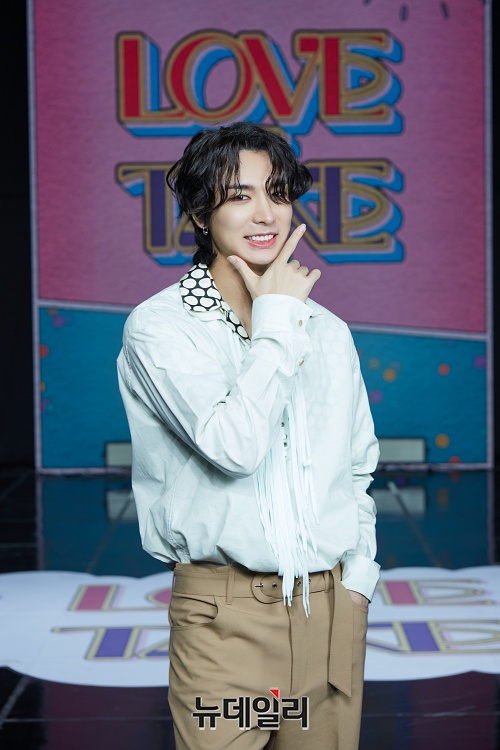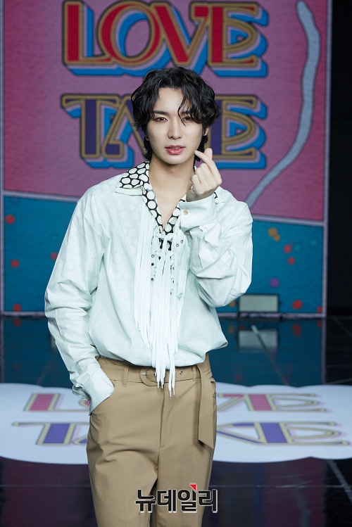 아이돌그룹 펜타곤 멤버 유토가 15일 오후 온라인으로 진행된 미니앨범 'LOVE or TAKE(러브 올 테이크)' 쇼케이스에서 포토타임을 갖고 있다.