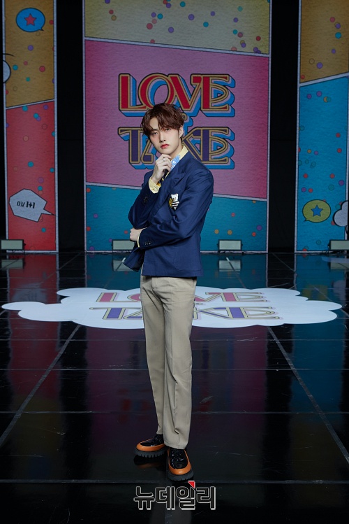 아이돌그룹 펜타곤 멤버 여원이 15일 오후 온라인으로 진행된 미니앨범 'LOVE or TAKE(러브 올 테이크)' 쇼케이스에서 포토타임을 갖고 있다.