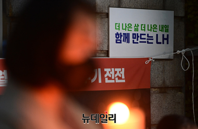[포토] LH 앞 촛불든 청년단체 "청와대부터 기초단체까지 전수조사 하라"