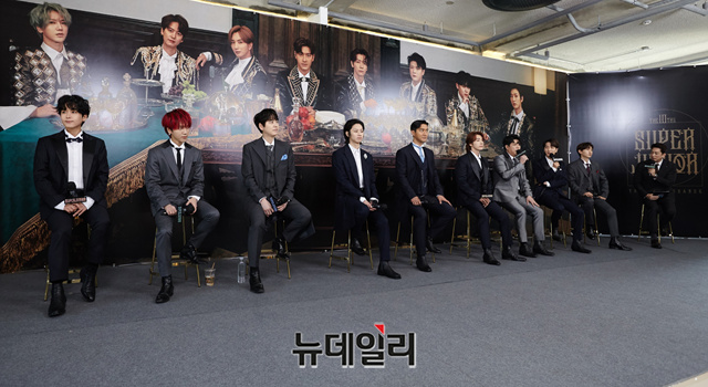 슈퍼주니어가 16일 오전 온라인으로 진행된 정규 10집 앨범 'The Renaissance(더 르네상스)' 기자간담회에서 포토타임을 갖고 있다.정규 10집 더 르네상스는 슈퍼주니어 단체 버전과 색다른 조합으로 화제를 모았던 ‘Passionate’(열정), ‘Versatile’(다재다능), ‘Beautiful’(아름다움) 등 유닛 버전, 여기에 멤버 별 개인 버전까지 총 13종으로 구성됐다.타이틀 곡은 경쾌하고 신나는 리듬과 기타 리프가 중독적인 디스코 팝 장르 'House Party(하우스 파티)'다. 작곡가 유영진이 참여해 완성도를 높였다.음원과 뮤직비디오는 오후 6시에 공개된다. 이어 오후 7시에는 Mnet 컴백쇼를 통해 첫 무대를 가질 예정이다. (사진=sm엔터테인먼트)