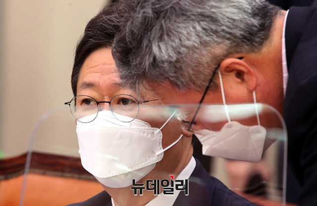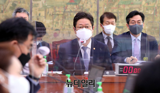 황희 문화체육부장관이 16일 오전 국회에서 열린 문화체육관광위원회 전체회의에 출석해 의원들의 질문에 답하고 있다.