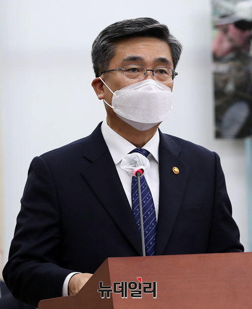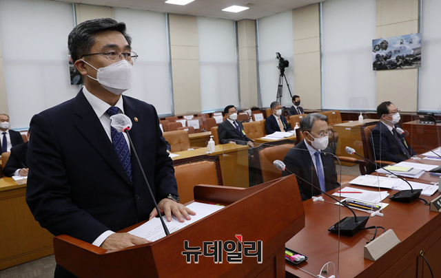 서욱 국방부 장관이 16일 오전 국회에서 열린 국방위원회 전체회의에 출석해 사관학교 설치법 일부개정법률안 등 법안 통과에 대한 인사말을 하고 있다. (사진=공동취재단)