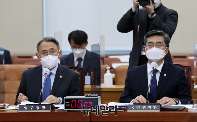 서욱 국방부 장관이 16일 오전 국회에서 열린 국방위원회 전체회의에 출석해 의원들의 질문에 답하고 있다. (사진=공동취재단)