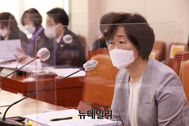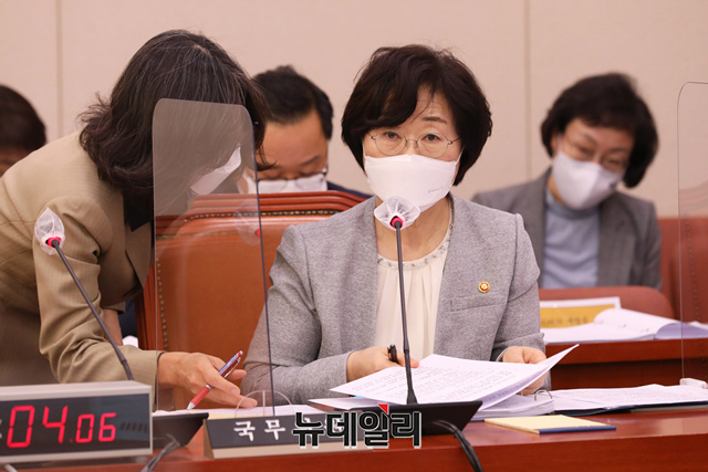 정영애 여성가족부 장관이 16일 국회에서 열린 여성가족위원회 전체회의에 출석해 의원들의 질문에 답하고 있다. (사진=공동취재단)