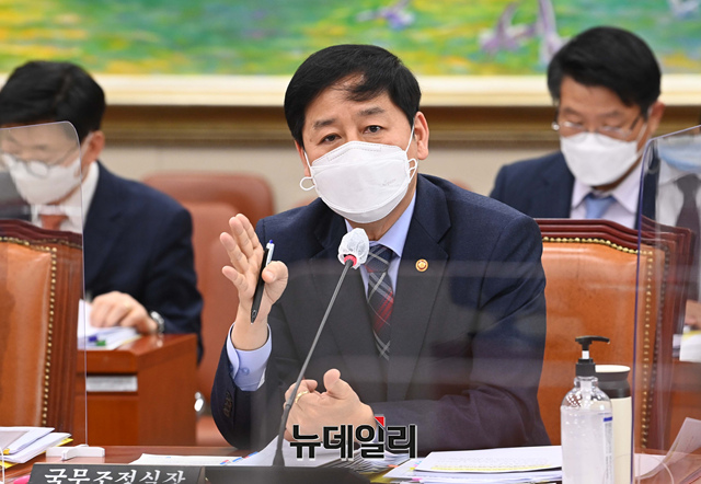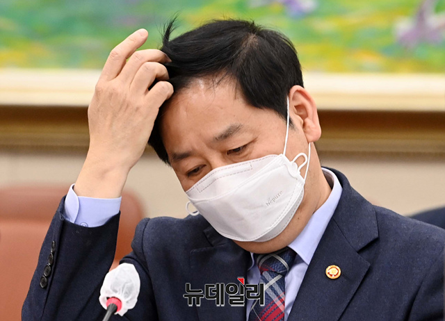 구윤철 국무조정실장이 16일 오후 국회에서 열린 정무위원회 전체회의에서 머리카락을 넘기고 있다. (사진=공동취재단)