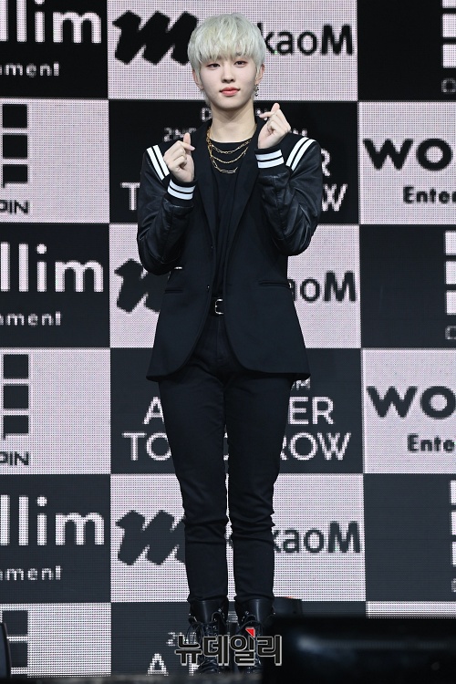 아이돌그룹 드리핀의 멤버 이협이 16일 오후 서울 광진구 예스24 라이브홀에서 열린 미니앨범 'A Better Tommorrow(어 베러 투모로우)' 쇼케이스에서 포토타임을 갖고 있다.