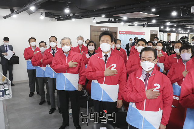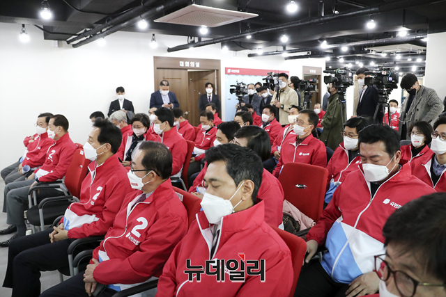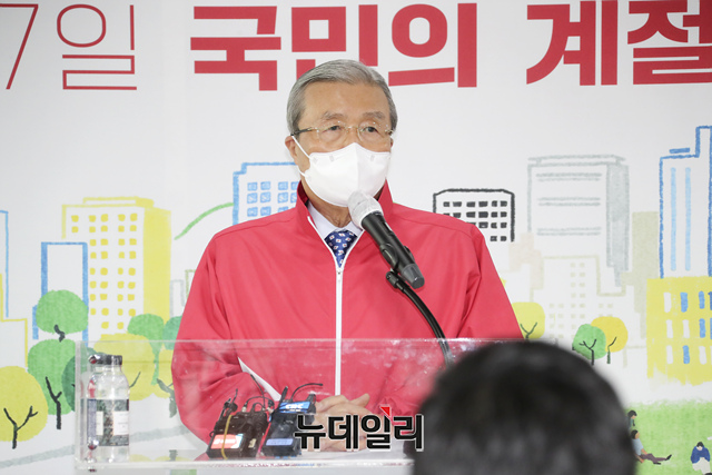 김종인 국민의힘 비상대책위원장이 19일 오후 서울 여의도 중앙당사에서 열린 서울시장 후보 및 서울당협위원장 회의에서 인사말을 하고 있다. (사진=국민의힘)