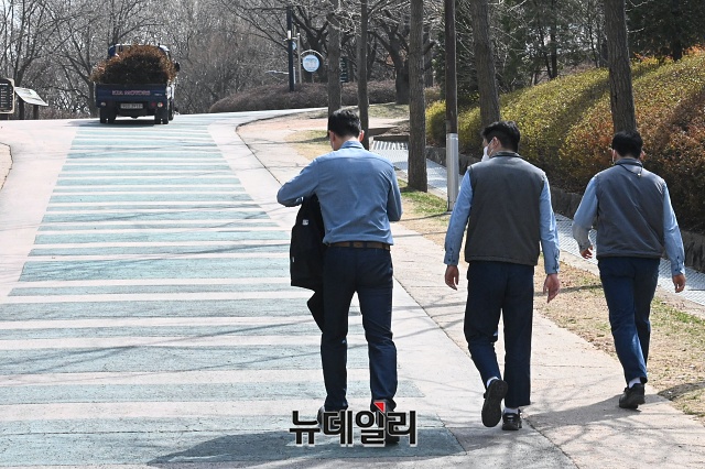 절기상 '춘분(春分)'을 앞둔 19일 오후 인천 중구 월미공원에서 시민들이 겉옷을 벗고 산책을 하고 있다.