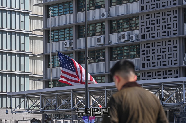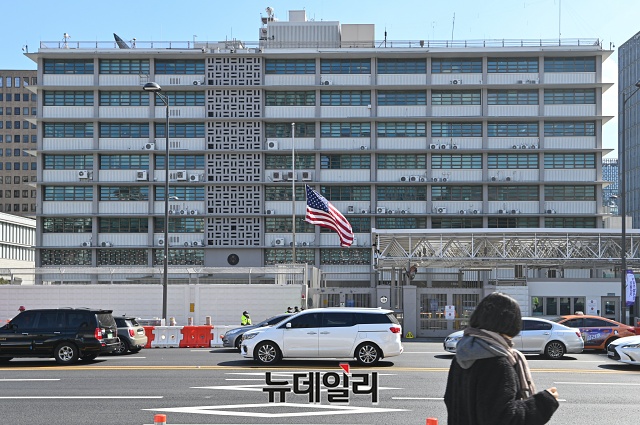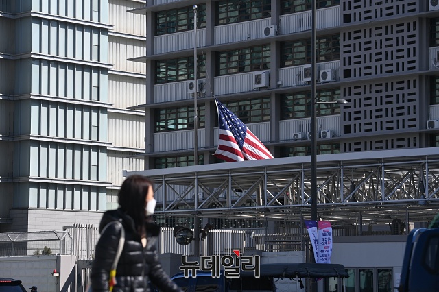 [포토] '애틀랜타 총격 추모' 조기 게양된 주한 미국대사관