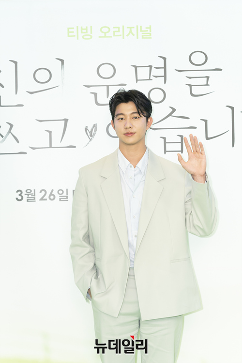 배우 기도훈이 22일 오후 온라인으로 열린 티빙 오리지널 '당신의 운명을 쓰고 있습니다(연출 김병수, 극본 은선우)' 제작보고회에서 포토타임을 갖고 있다.'당신의 운명을 쓰고 있습니다'는 인간의 운명을 쓰는 '신' 신호윤(기도훈)이 세기의 로맨스를 완성하기 위해 막장 드라마를 쓰는 '작가' 고체경(전소니)의 작품을 표절해 명부를 작성하면서 벌어지는 이야기를 담은 판타지 로맨스 드라마다.라이징스타 스타 전소니, 기도훈, 박상남, 김우석, 갈소원이 출연한다. 26일 오후 4시 티빙에서 전편 단독 공개된다. (사진=티빙)