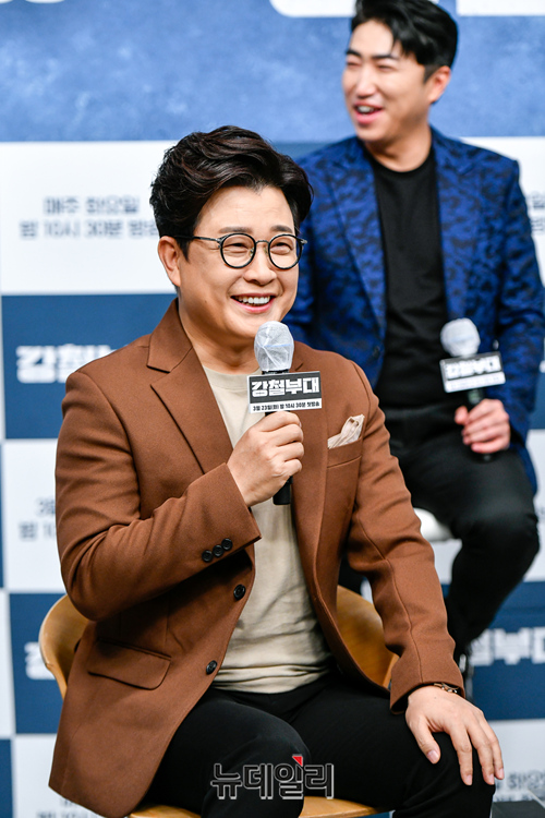 방송인 김성주가 23일 오후 온라인으로 열린 채널A, SKY 새 예능 '강철부대(연출 이원웅 신재호 정인혁 최승호 김주아) 제작발표회에서 포토타임을 갖고 있다.
