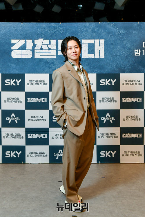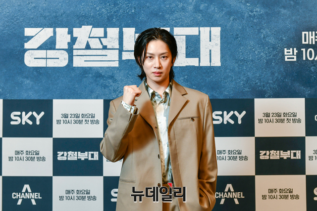 가수 김희철이 23일 오후 온라인으로 열린 채널A, SKY 새 예능 '강철부대(연출 이원웅 신재호 정인혁 최승호 김주아) 제작발표회에서 포토타임을 갖고 있다.