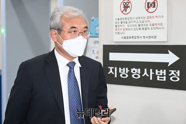 이민걸 전 법원행정처 기획조정실장이 23일 오후 서울 서초구 서울중앙지법에서 열린 1심 선고를 마치고 법원을 나서고 있다.