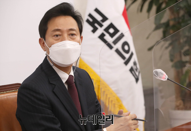 [포토] 기자회견 갖는 오세훈 국민의힘 서울시장 후보