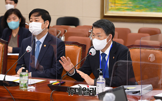 은성수 금융위원장이 24일 오전 국회에서 열린 정무위원회 전체회의에 출석해 현안관련 질문에 답하고 있다. (사진=공동취재단)