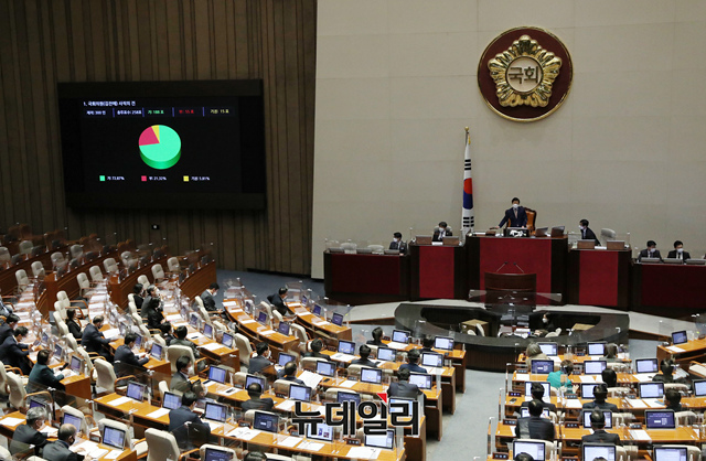 김진애 열린민주당 의원 사직의 건이 24일 오후 국회에서 열린 본회의에서 통과되고 있다. (사진=공동취재단)