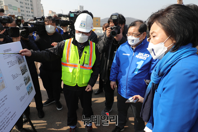 [포토] 경인지하차도 공사 현장 방문한 박영선 후보