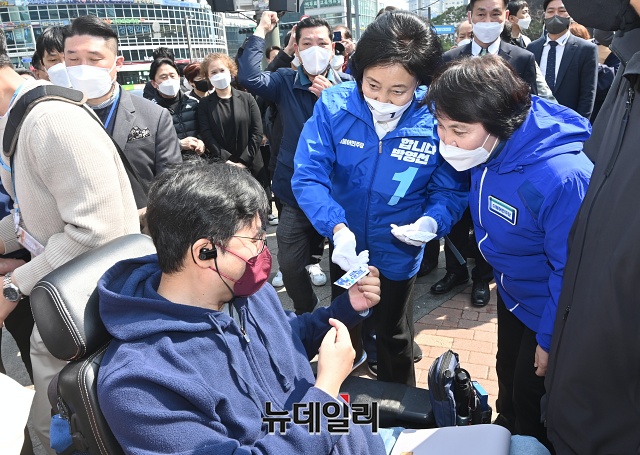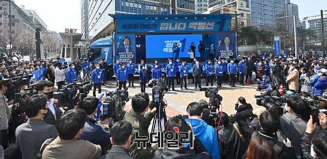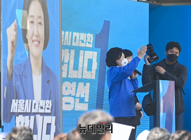 [포토] 서울시장 유세 출정식, 지지호소하는 박영선 후보