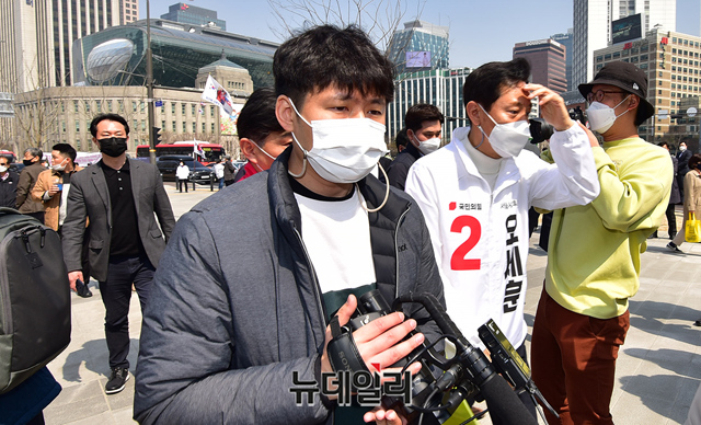 [포토] 서울시청 보이는 대한문서 지지호소하는 오세훈
