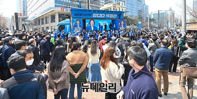 [포토] 박영선 서울시장 후보 유세 출정식에 몰린 인파