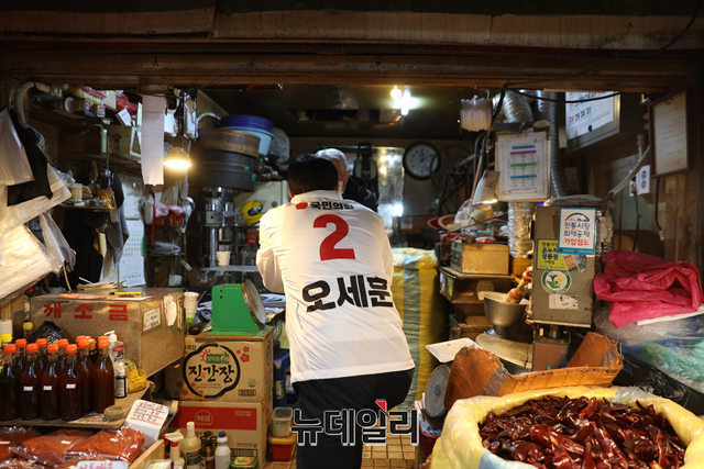 [포토] 구로구 찾아 지지호소 하는 오세훈 후보