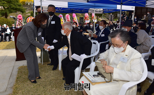 [포토] 우남 이승만 탄신146주년 기념식, 찬송부르는 이인수 박사 내외