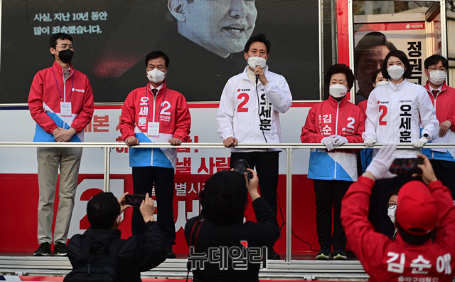 [포토] 오세훈 지원유세 나선 '배현진-김웅'