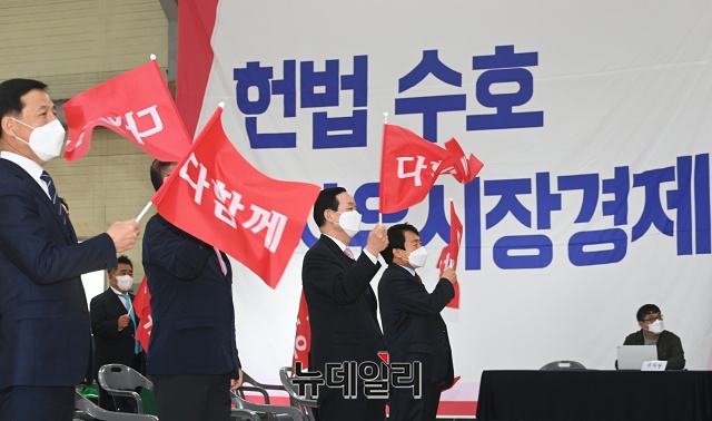 '다함께자유당(가칭)'은 윤석열을사랑하는모임이 모여 만든 정당이다. 최원석 초대 창당준비위원장은 "내년 치뤄지는 대통령 선거에 윤석열 전 검찰총장을 반드시 우리 당으로 모셔와 정권교체를 이뤄내겠다"고 밝혔다. (인천=권창회 기자)