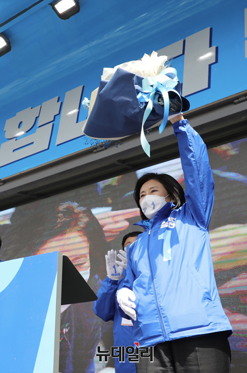 박영선 더불어민주당 서울시장 후보가 29일 서울 성북구 길음동 인근에서 집중유세를 갖고 있다. (사진=박영선캠프)