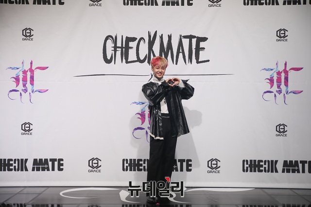 혼성그룹 '체크메이트(CHECKMATE)'의 멤버 노아가 29일 오후 온라인으로 진행된 두번째 싱글 'YOU(유)' 쇼케이스에서 포토타임을 갖고 있다.